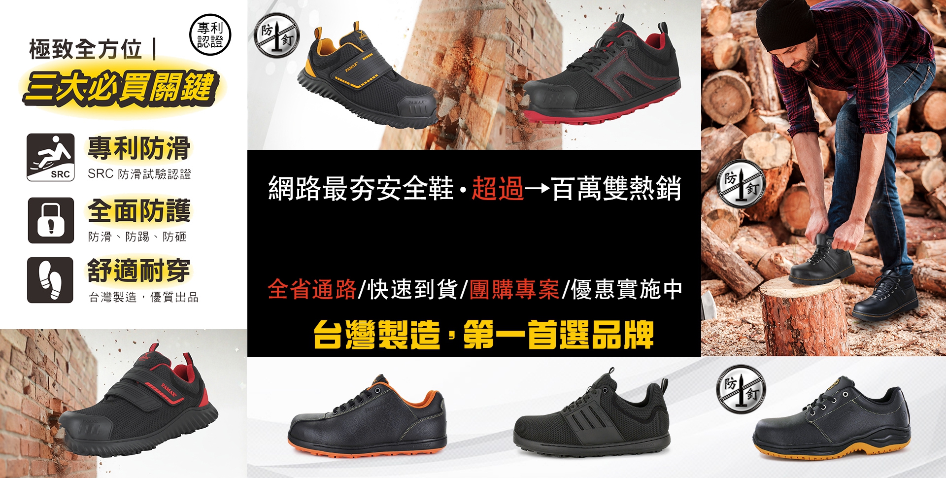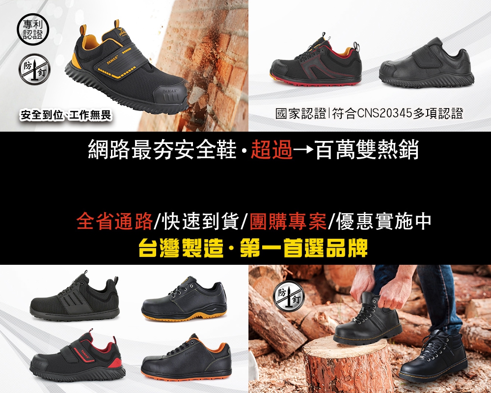 通過最新 CNS 20345 鋼頭與塑鋼頭安全鞋認證,品質與安全有保障,多項專利設計,舒適耐穿、機能齊全,適合長時間工作環境需求。堅持 台灣製造,深耕安全鞋領域逾 20 年,行銷通路遍佈全台,企業團購 一通電話、專業服務到位,提供多款式、多尺寸與穩定供貨,深受各大企業與消費者長期信賴。