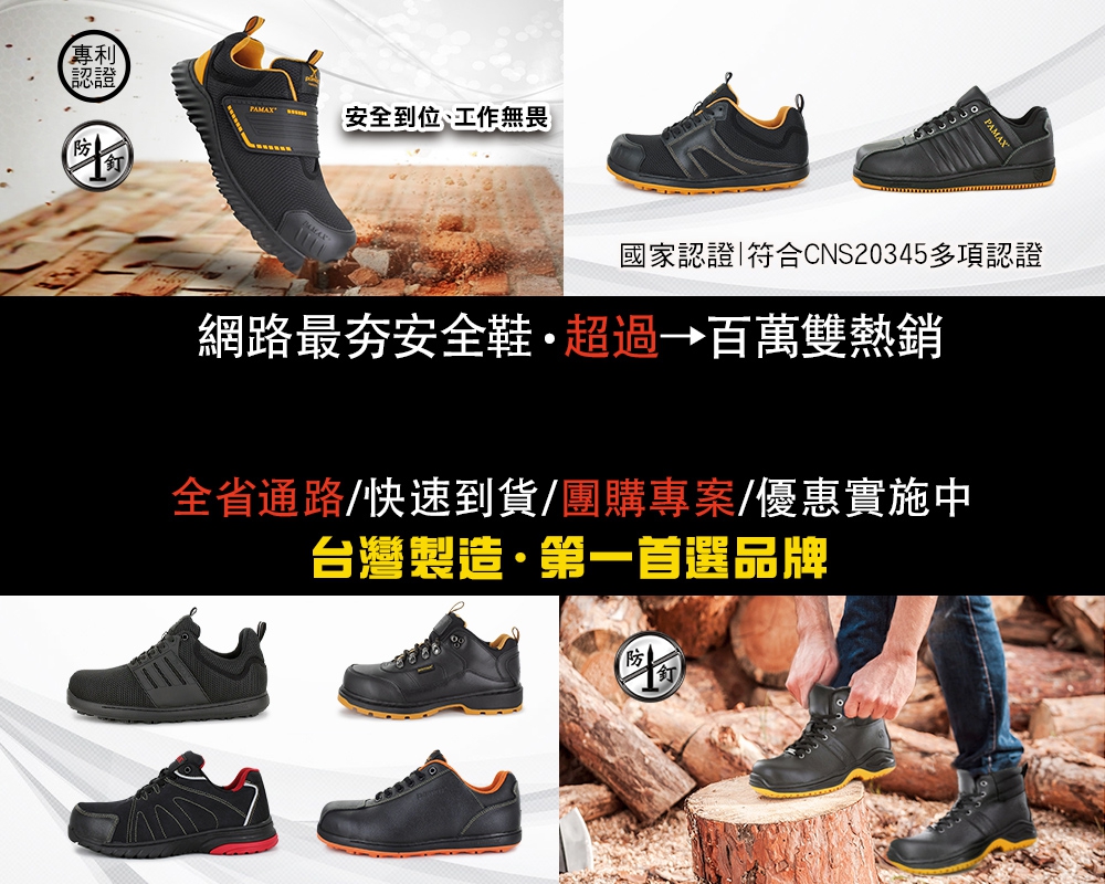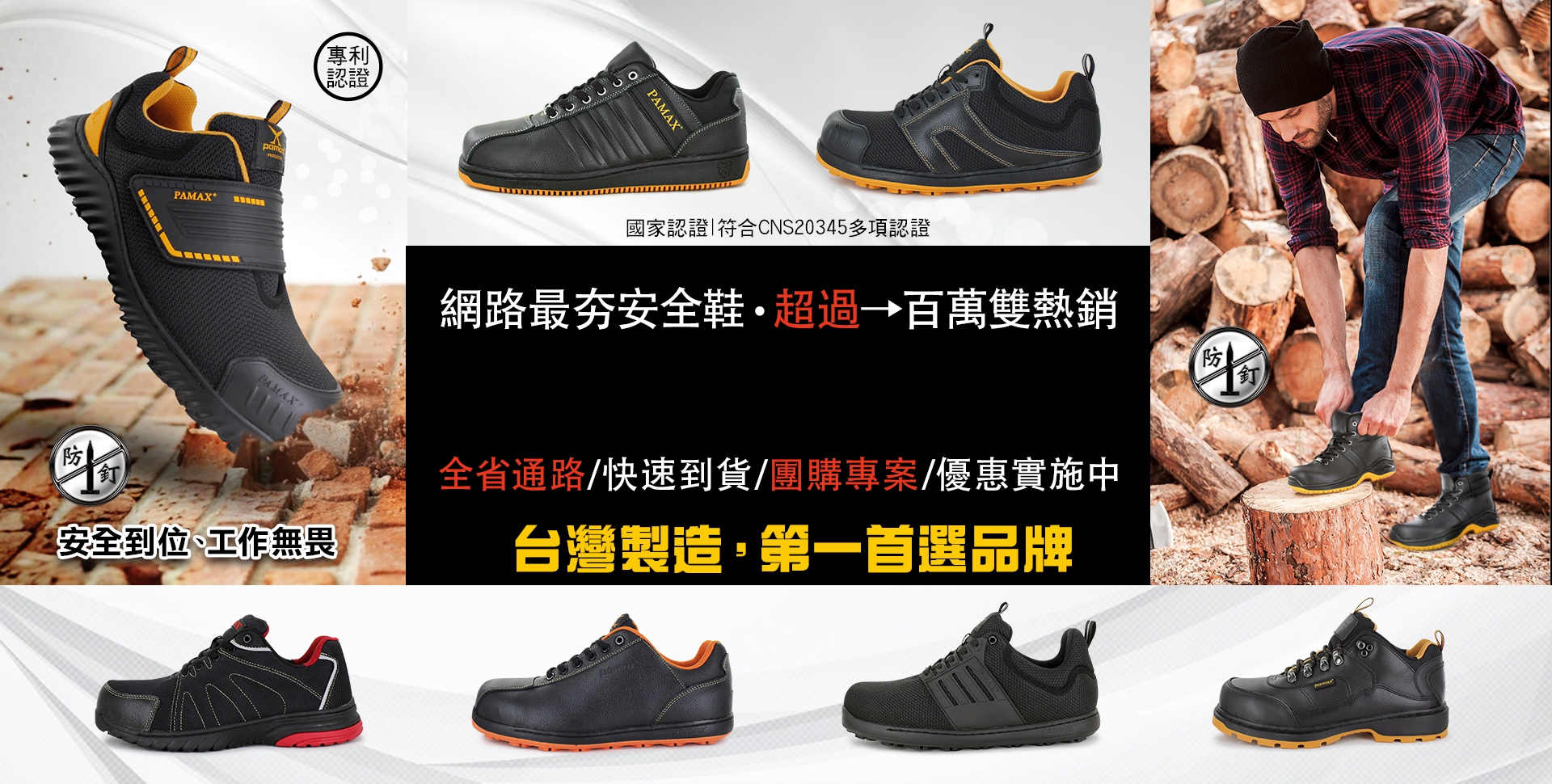 堅持台灣製造生產,持續開發不同機能的安全鞋,【PAMAX 單一品牌,款式最多元,功能最齊全,讓您一次滿足所有的需求】榮獲各大機關公司指定及選用,最多公司行號【指定團購之品牌】