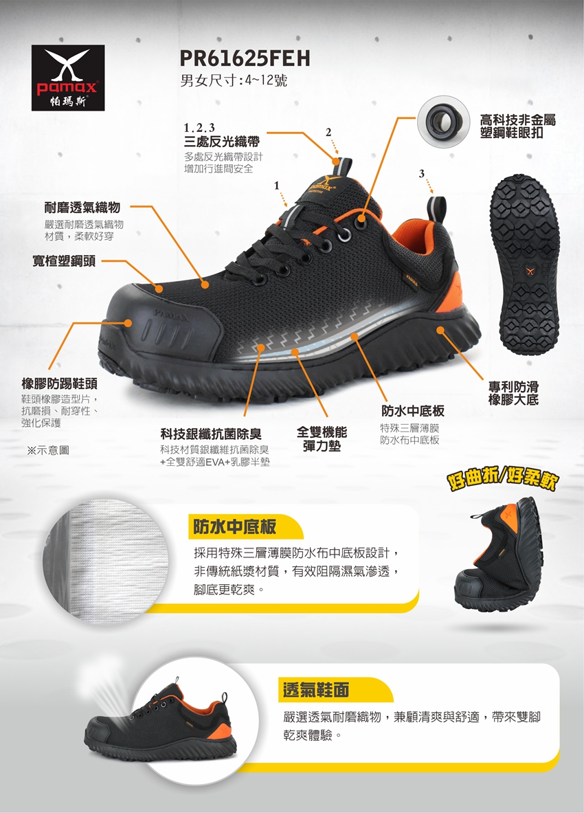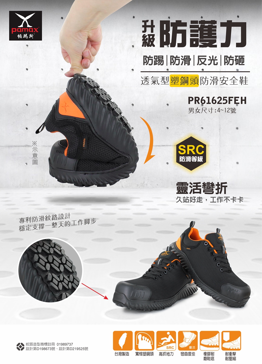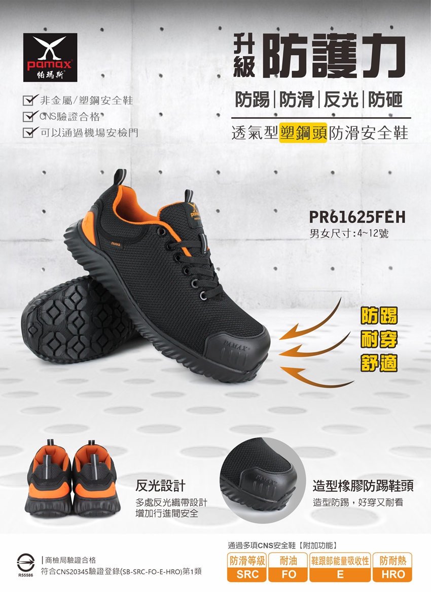 透氣型/防踢防滑/塑鋼頭安全鞋-PR61625FEH