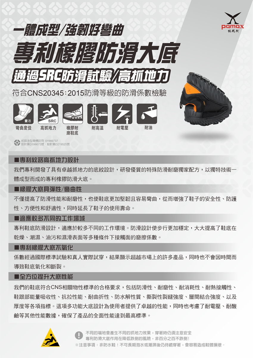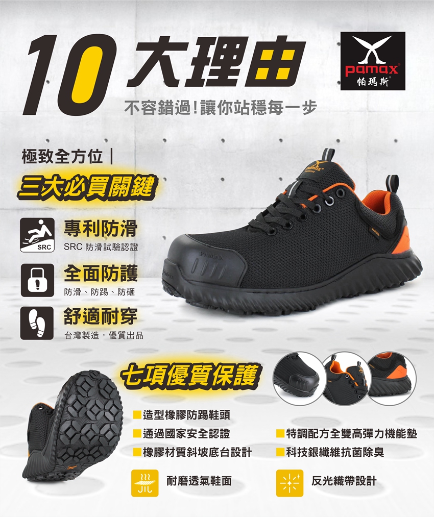 購買PAMAX安全鞋依實際鞋子為主:PAMAX帕瑪斯官網https://www.pamax.com.tw/,網站圖片及資料或其他通路販售的資料,可能因時間及維護管理未能即時更新,購買者請依實際收到的安全鞋或鞋類為主,包含鞋子顏色,尺寸,商品標示,製造日期,鞋盒包裝,商品說明,產地,廠商,電話,地址,相關吊牌,依取得當時為主,請確認是否正確,收到商品後若有疑慮,可於取貨日7天内向購買通路提出詢問,或依當時原購買通路的購物須知及退貨辦法進行。