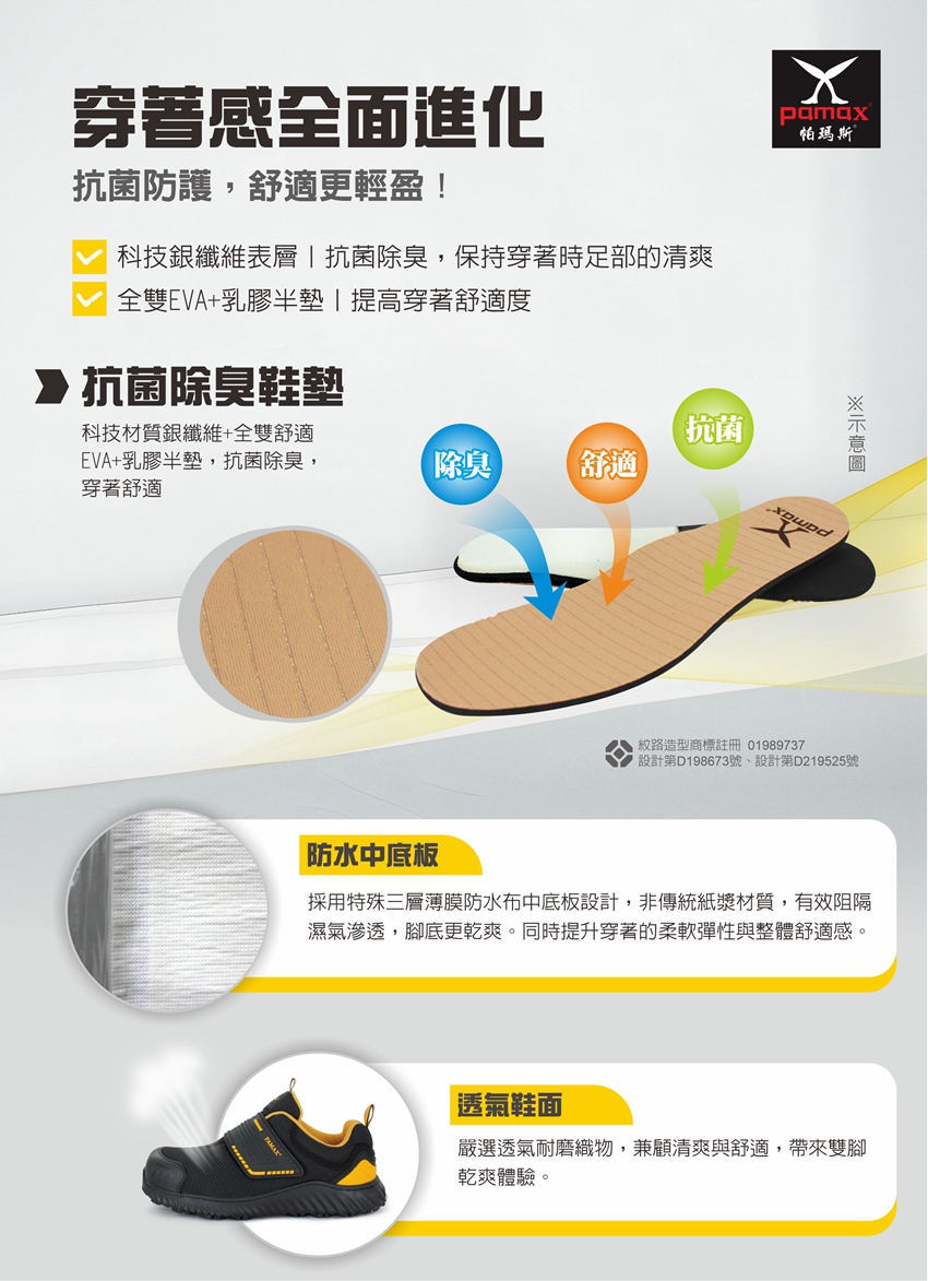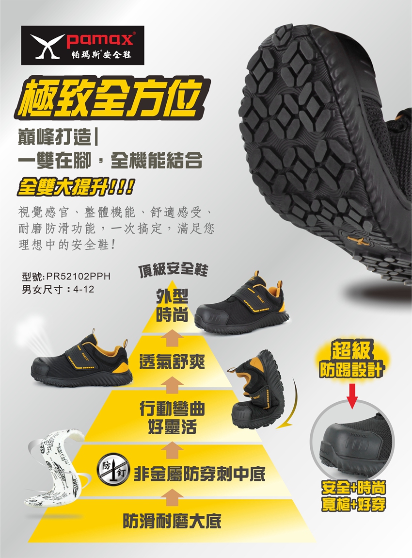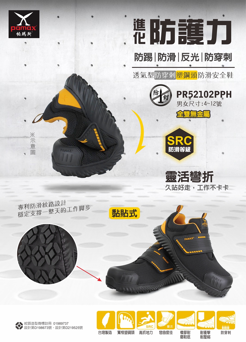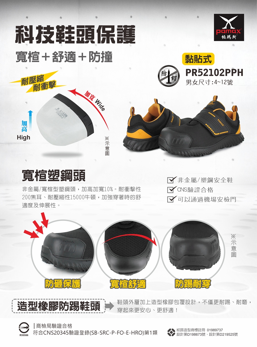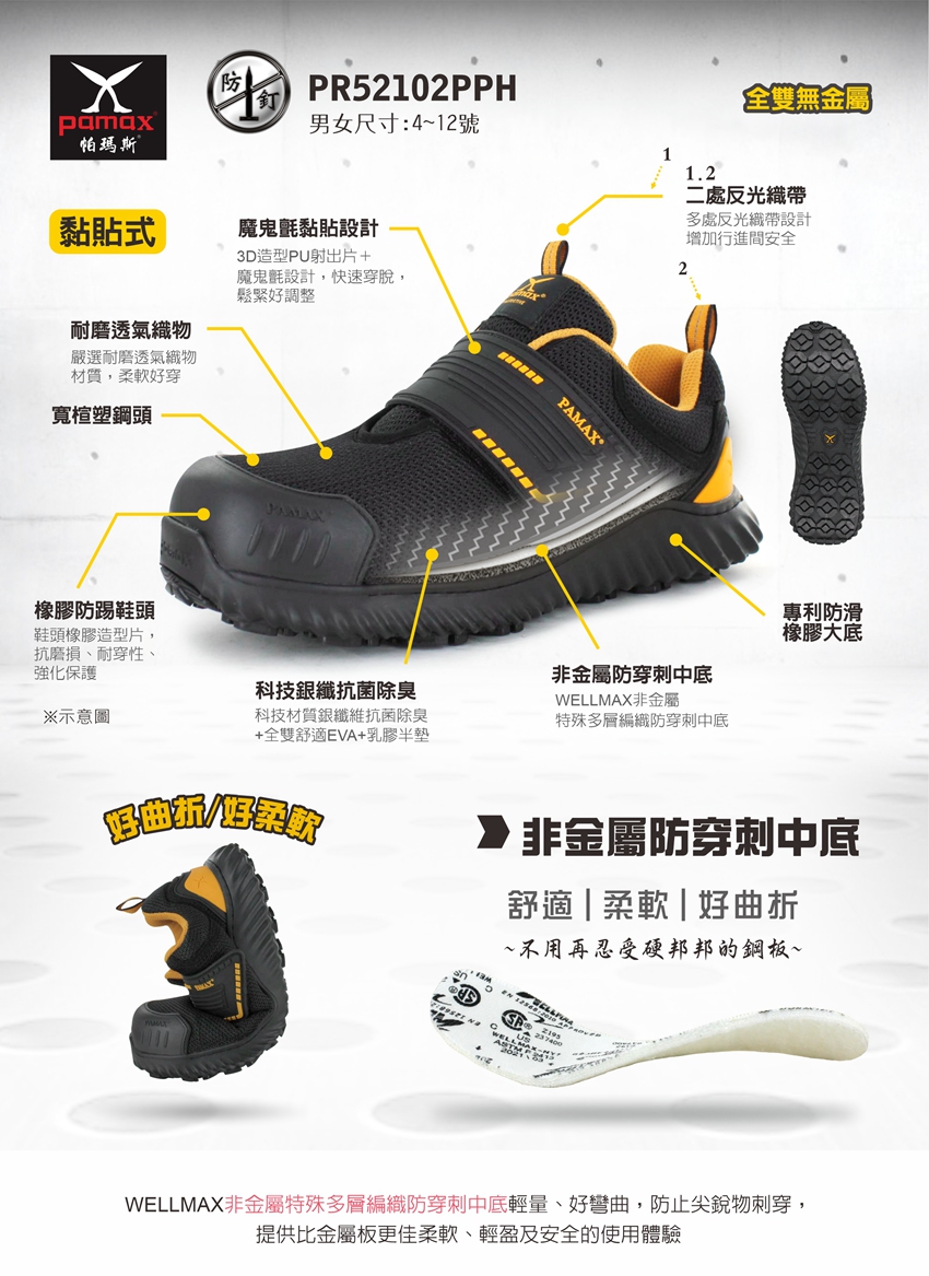 透氣型、黏貼式、防穿刺、塑鋼頭、符合CNS、可通過機場安檢門