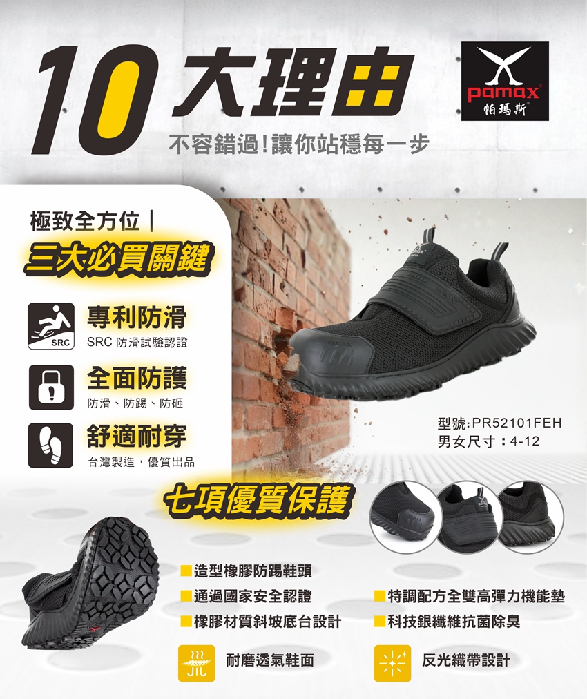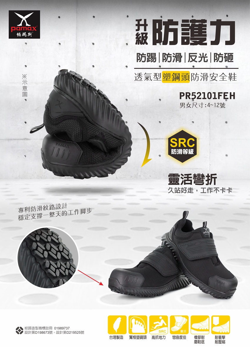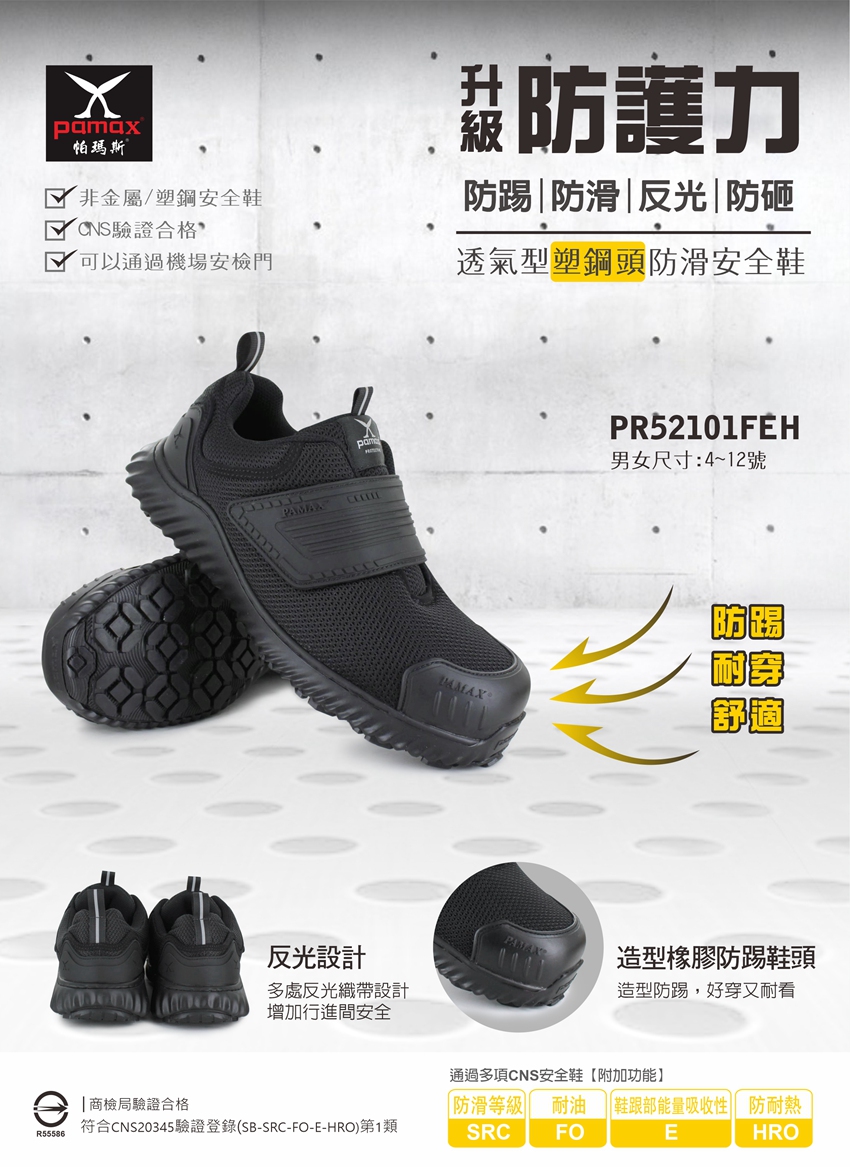 此工作安全鞋【通過經濟部標準檢驗局驗證登錄】依據標準【CNS20345:2015】,依法取得合格證書及合法銷售 購買PAMAX安全鞋依實際鞋子為主:PAMAX帕瑪斯官網https://www.pamax.com.tw/,網站圖片及資料或其他通路販售的資料,可能因時間及維護管理未能即時更新,購買者請依實際收到的安全鞋或鞋類為主,包含鞋子顏色,尺寸,商品標示,製造日期,鞋盒包裝,商品說明,產地,廠商,電話,地址,相關吊牌,依取得當時為主,請確認是否正確,收到商品後若有疑慮,可於取貨日7天内向購買通路提出詢問,或依當時原購買通路的購物須知及退貨辦法進行。