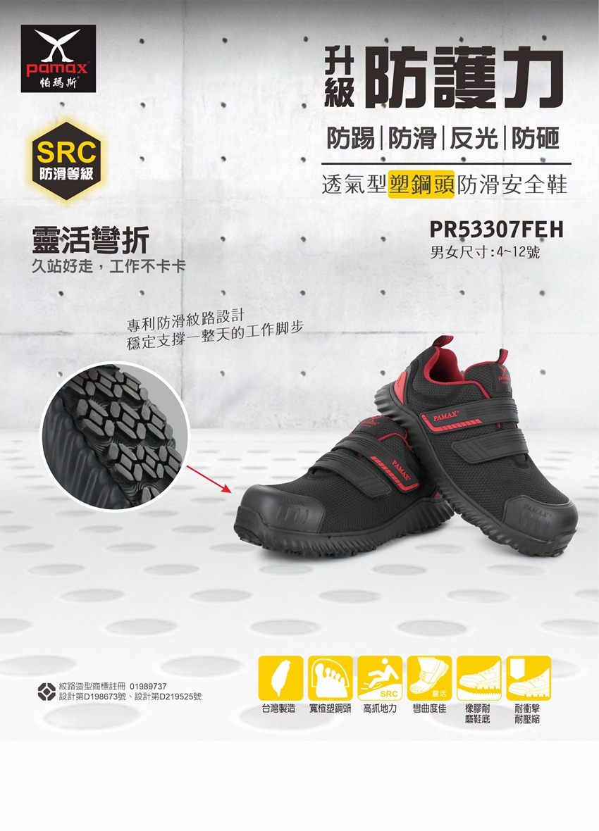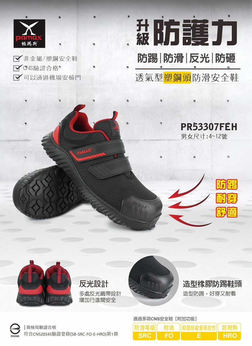 透氣型/防踢防滑/塑鋼頭安全鞋-PR53307FEH