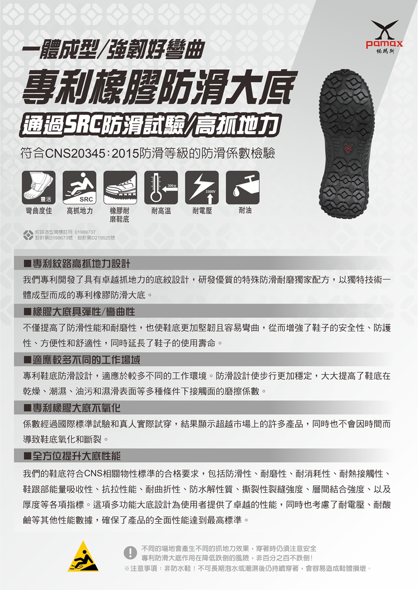 購買PAMAX安全鞋依實際鞋子為主:PAMAX帕瑪斯官網https://www.pamax.com.tw/,網站圖片及資料或其他通路販售的資料,可能因時間及維護管理未能即時更新,購買者請依實際收到的安全鞋或鞋類為主,包含鞋子顏色,尺寸,商品標示,製造日期,鞋盒包裝,商品說明,產地,廠商,電話,地址,相關吊牌,依取得當時為主,請確認是否正確,收到商品後若有疑慮,可於取貨日7天内向購買通路提出詢問,或依當時原購買通路的購物須知及退貨辦法進行。