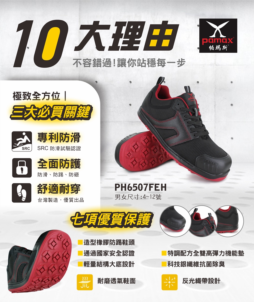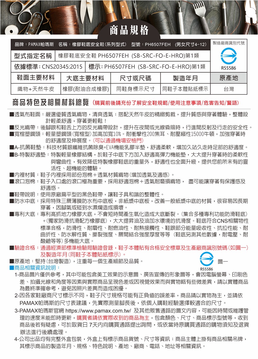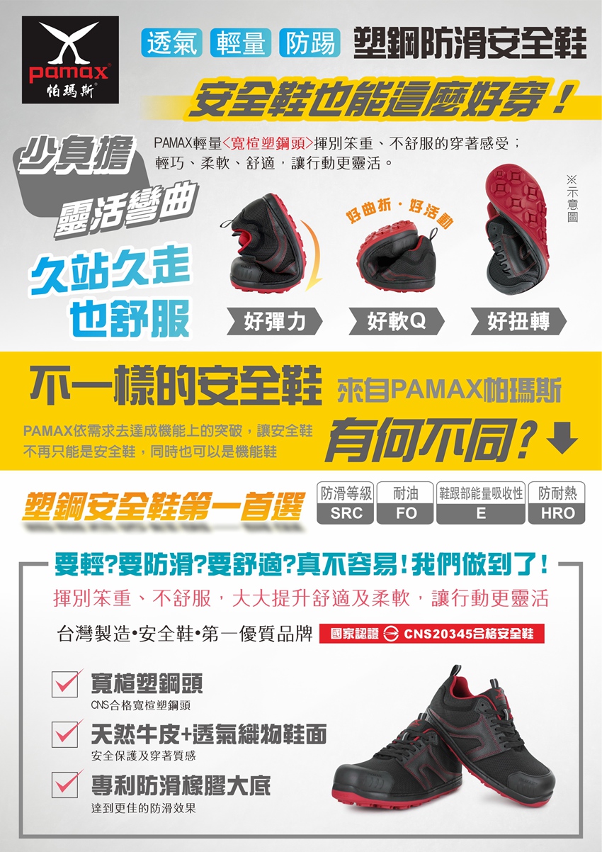 購買PAMAX安全鞋依實際鞋子為主:PAMAX帕瑪斯官網https://www.pamax.com.tw/,網站圖片及資料或其他通路販售的資料,可能因時間及維護管理未能即時更新,購買者請依實際收到的安全鞋或鞋類為主,包含鞋子顏色,尺寸,商品標示,製造日期,鞋盒包裝,商品說明,產地,廠商,電話,地址,相關吊牌,依取得當時為主,請確認是否正確,收到商品後若有疑慮,可於取貨日7天内向購買通路提出詢問,或依當時原購買通路的購物須知及退貨辦法進行。