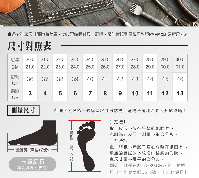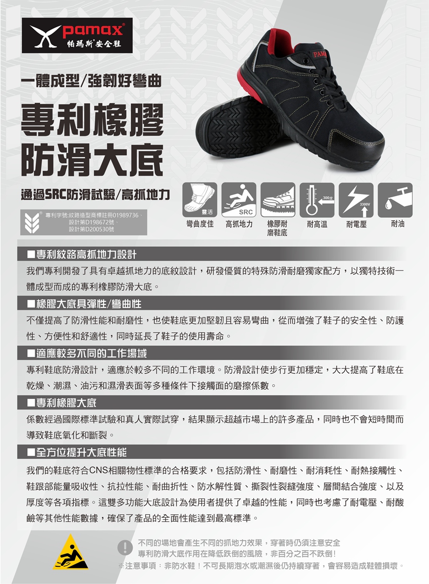 【 購買前後及使用前請充分了解, 使用說明/注意事項/危害告知/警語】點選網址進入 https://www.pamax.com.tw/news.php?act=view&id=3 使用說明 (1)鞋面材或外底顯著損傷之安全鞋,應立即更換。
